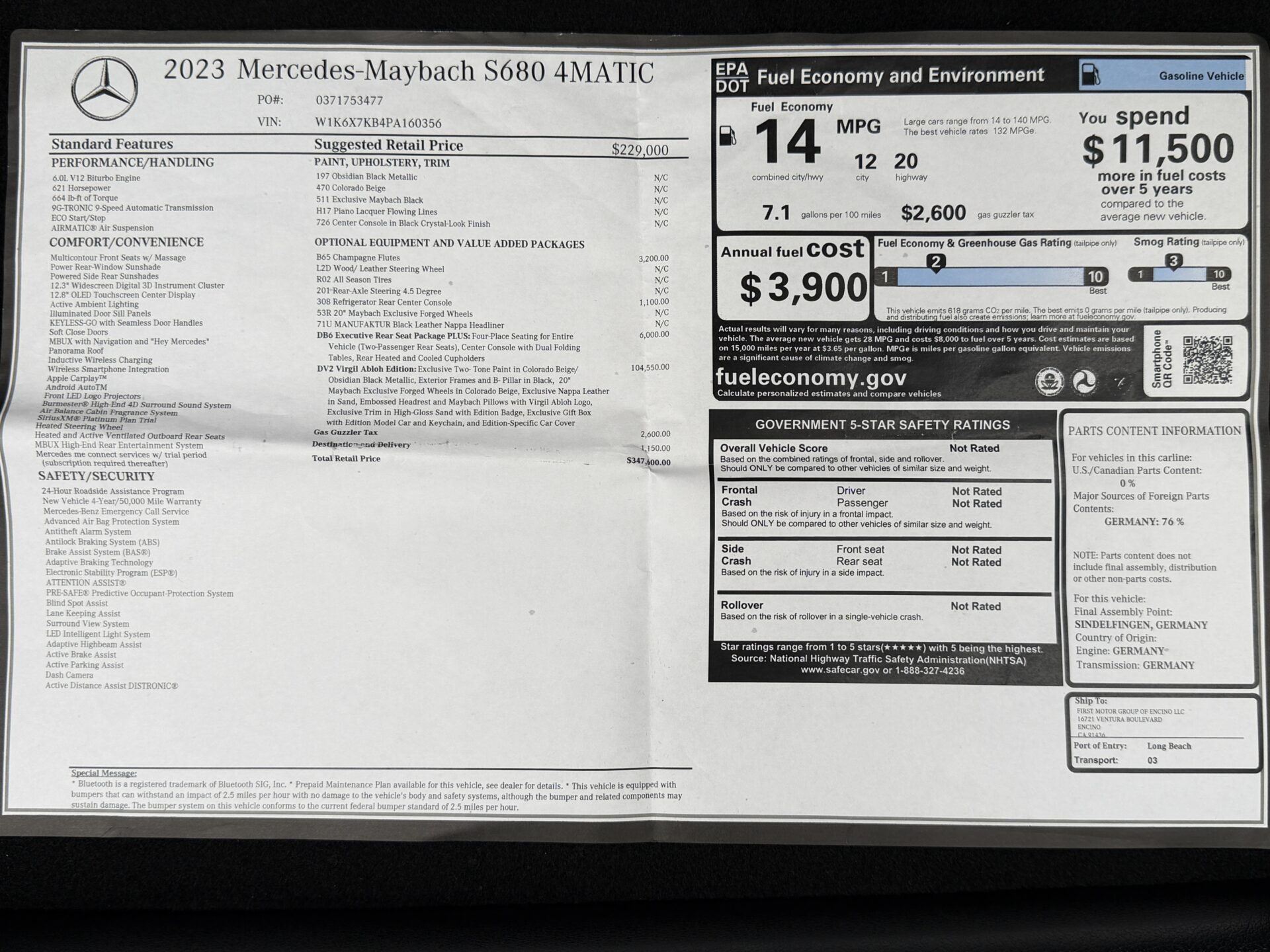 MSRP: $347,600.00