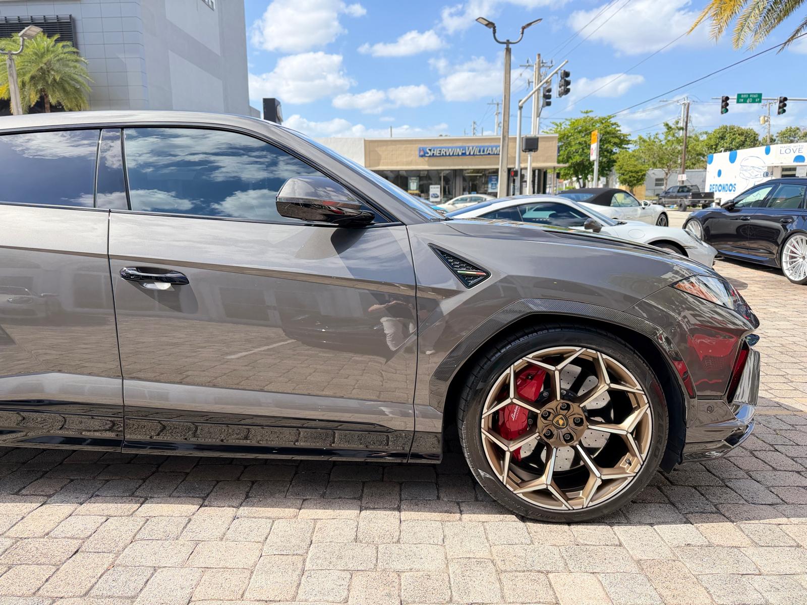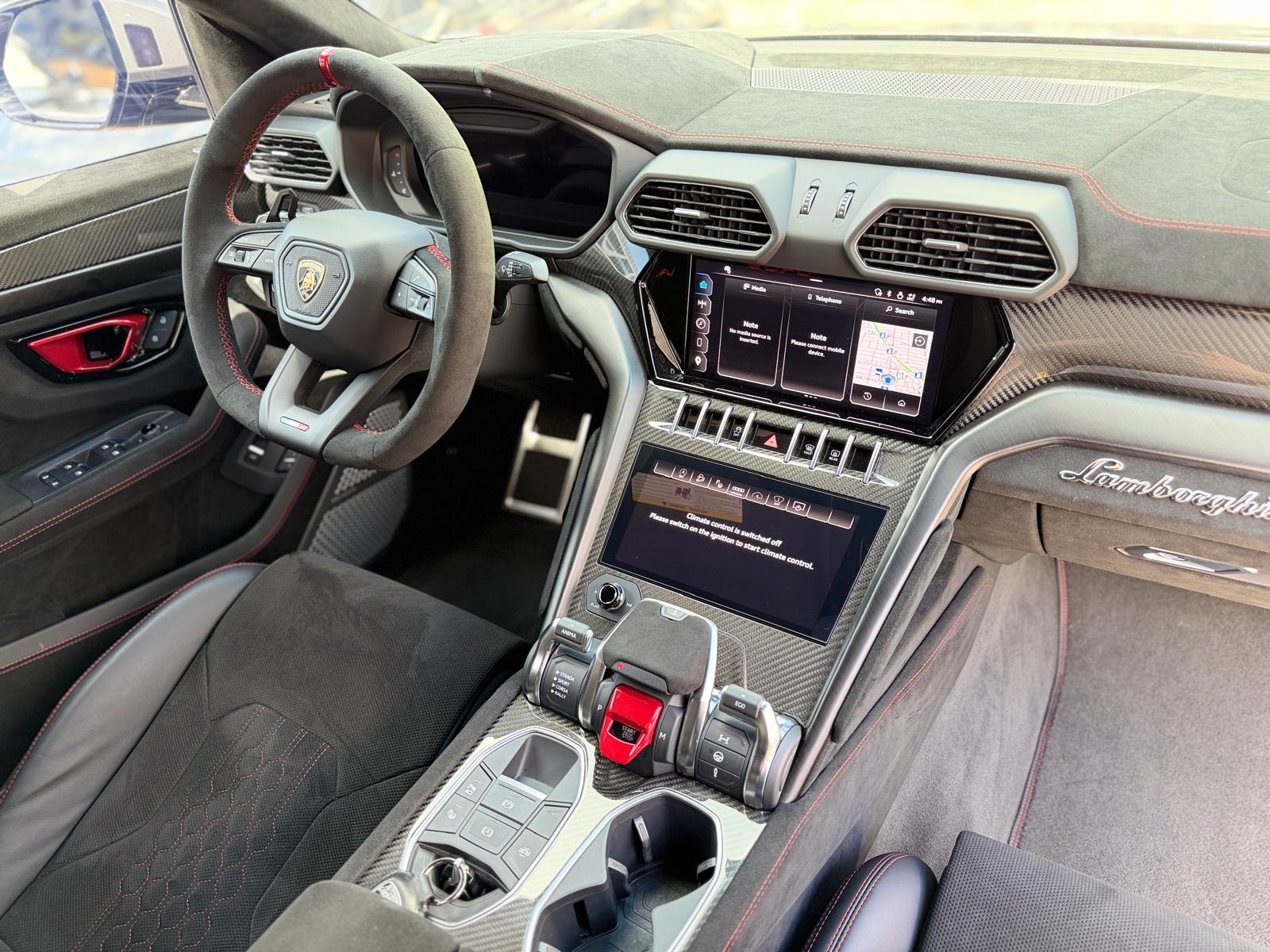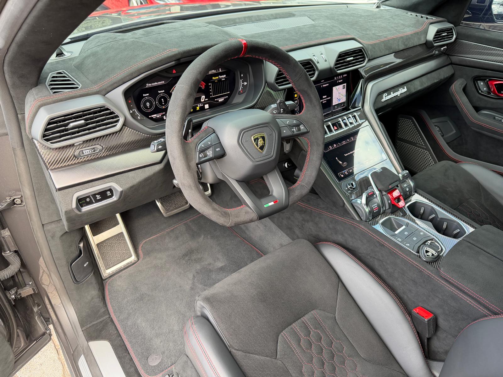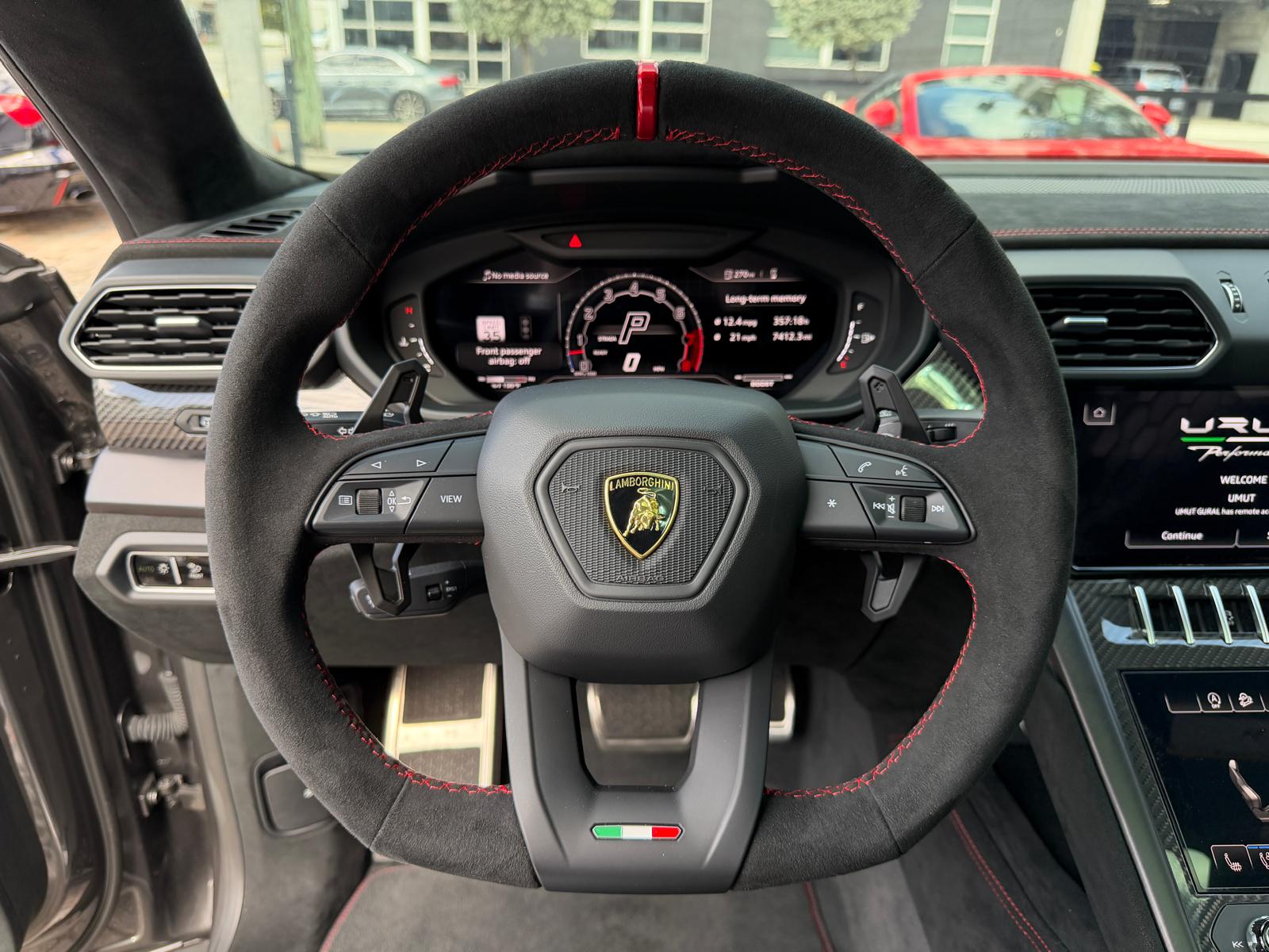 – Custom Alcantara Steering Wheel w/ Red Stitching.
